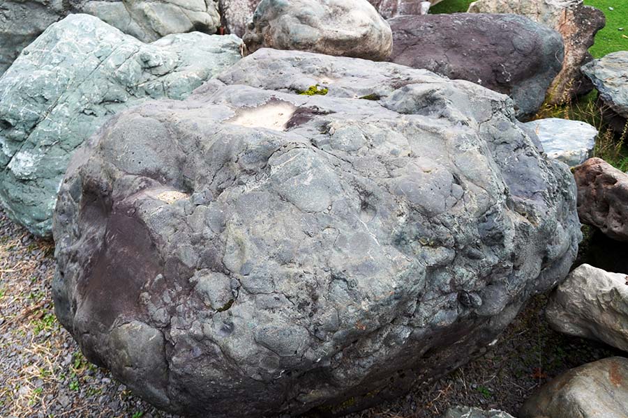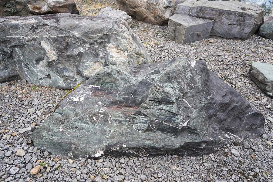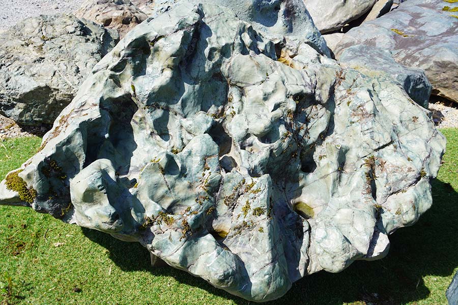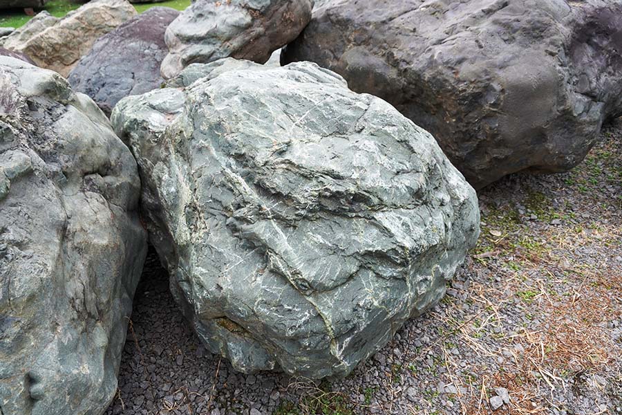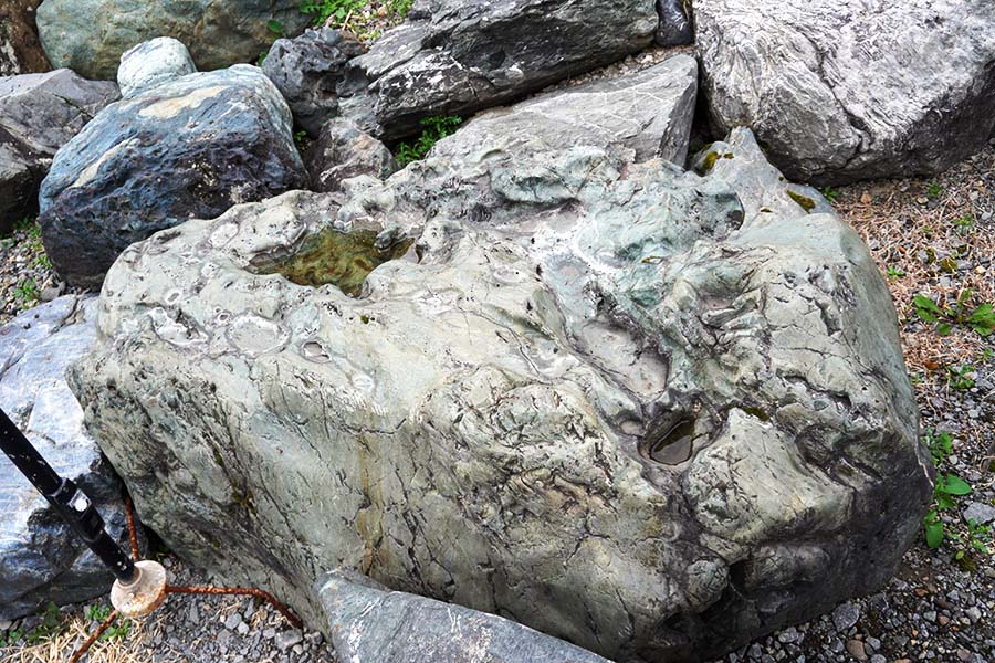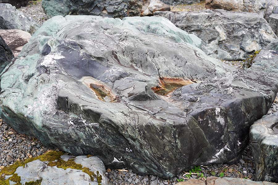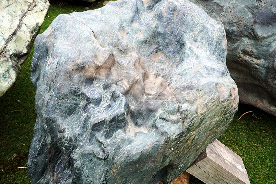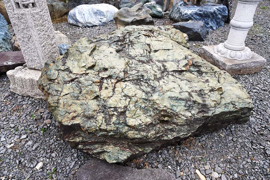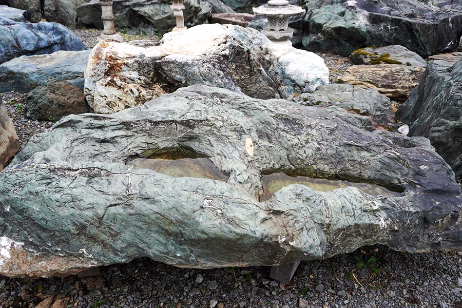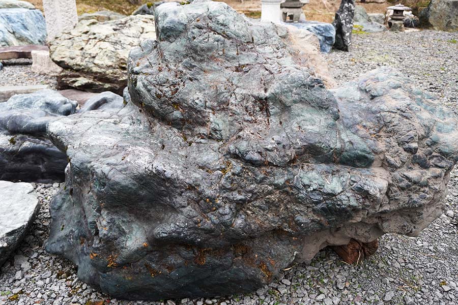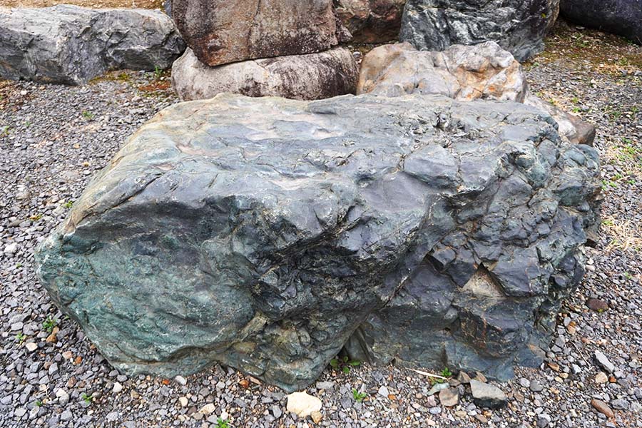 神居古潭石(カムイコタンセキ)は、北海道旭川市の神居古潭で採掘される鉱石です。溶岩が地殻変動による圧力を受けて生成された変成岩の一種で、緑・黒・藍など多彩な色彩をもっています。